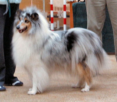Bluemerle weissfaktorierte Hündin CAC Gewinnerin im Jahre 2009 in England