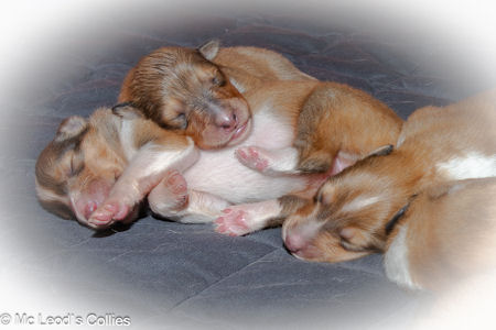 Beide Elternteile sowie alle Jungen sind keine Träger von jeder testbaren genetischen Krankheit, die bei Collies bekannt ist.